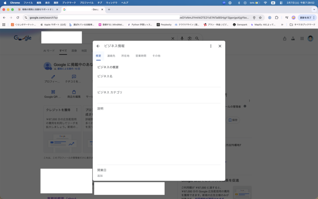 Google検索やGoogleマップに表示される事業者向けの無料プロフィールです。
