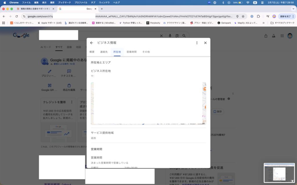 開業してしばらくしてから「Googleで自分の事業名・所在地を地図に出していみたい」と思いました。