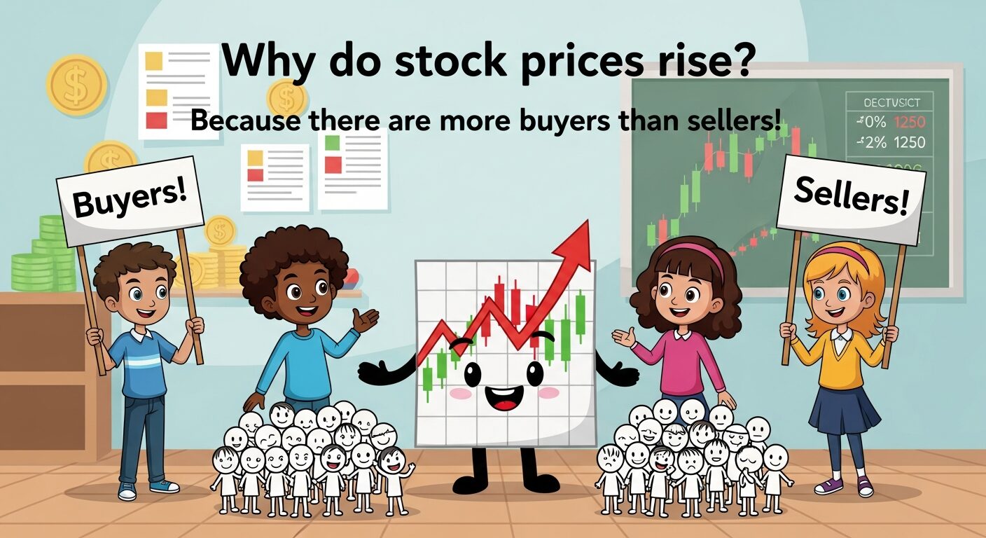 【子どもと学ぶお金の話②】株価が上がるのはなぜ?(売る人より買う人が多いから!)